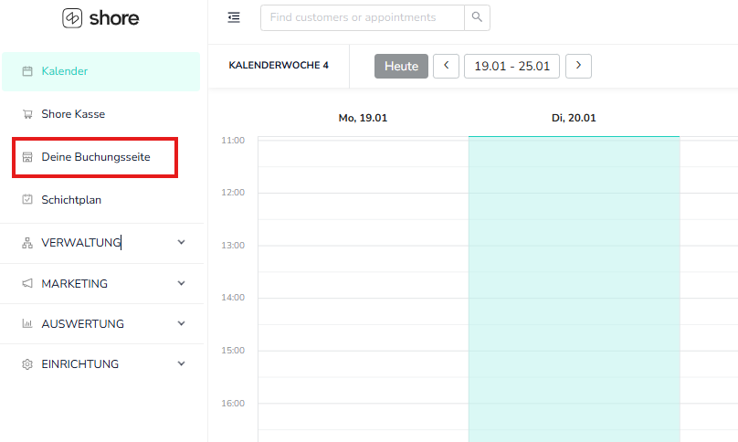 - Öffne das Hauptmenü und klicke auf Deine Buchungsseite. Deine Buchungsseite öffnet sich in einem neuen Fenster.