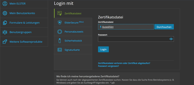 Falls du deine Zertifikatsdatei verloren oder dein Zertifikat abgelaufen ist, kannst du deine Zugangsdaten erneuern und anschließend wieder auf dein Benutzerkonto zugreifen: