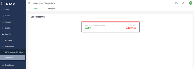 Hinweis: Die benötigten Daten von Shore sind nur verfügbar, wenn du einen aktiven Shore-Vertrag hast (kein Testkonto) und die Technische Sicherheitseinrichtung (TSE) aktiviert ist.