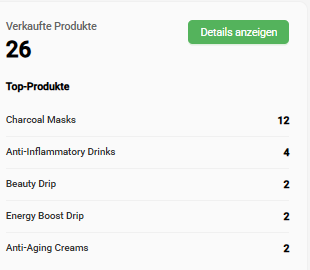 - Anzahl der verkauften Produkte: Zeigt die Gesamtmenge der verkauften Artikel an.
