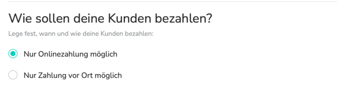 Sobald Shore Pay Online aktiv ist, kannst du wählen, wie deine Kunden bezahlen sollen: