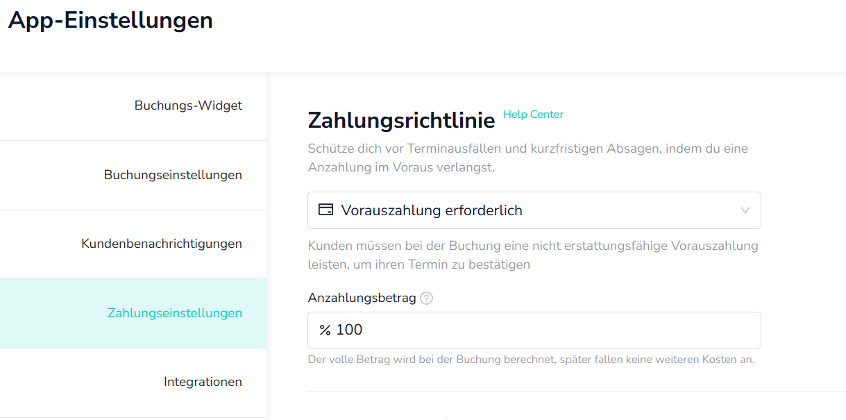 Diese Auswahl triffst du ebenfalls unter Kalendereinstellungen > Zahlungseinstellungen in deinem Shore Kalender
