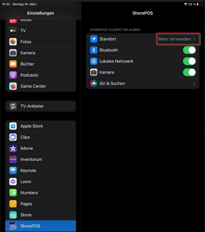 8. Ensure that location services are enabled and that the Shore POS app has the necessary permissions to process payments.