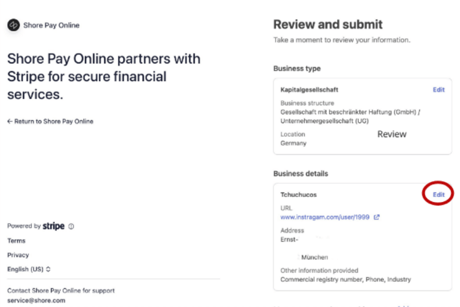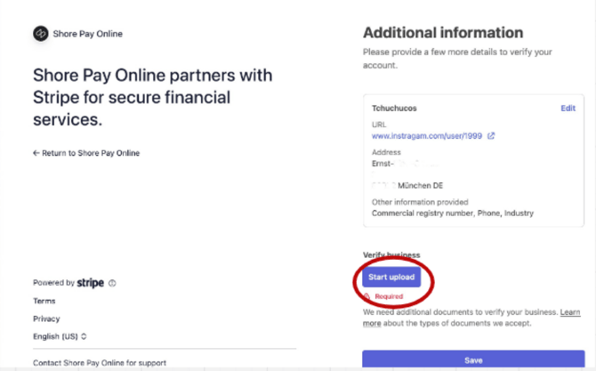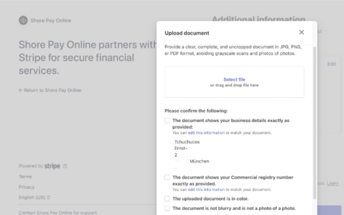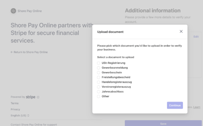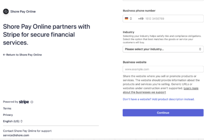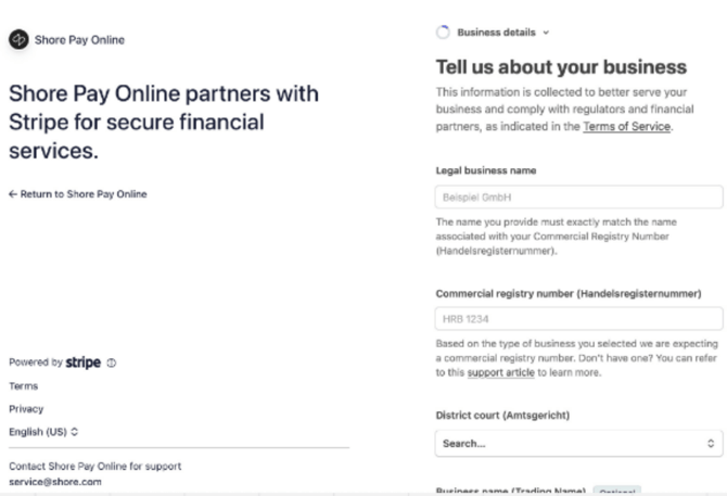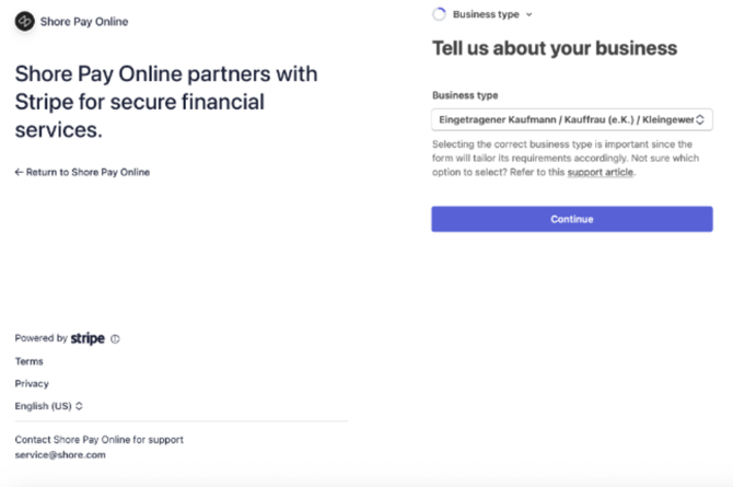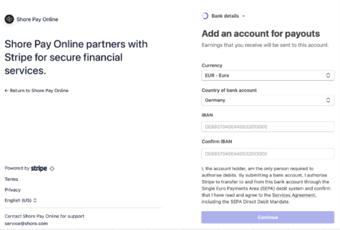 If you have already activated PayPal, you will instead see the button Set up Shore Pay Online.
