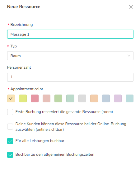 Once you have created resources and made all the settings, you can link them to your appointments to avoid overbooking.